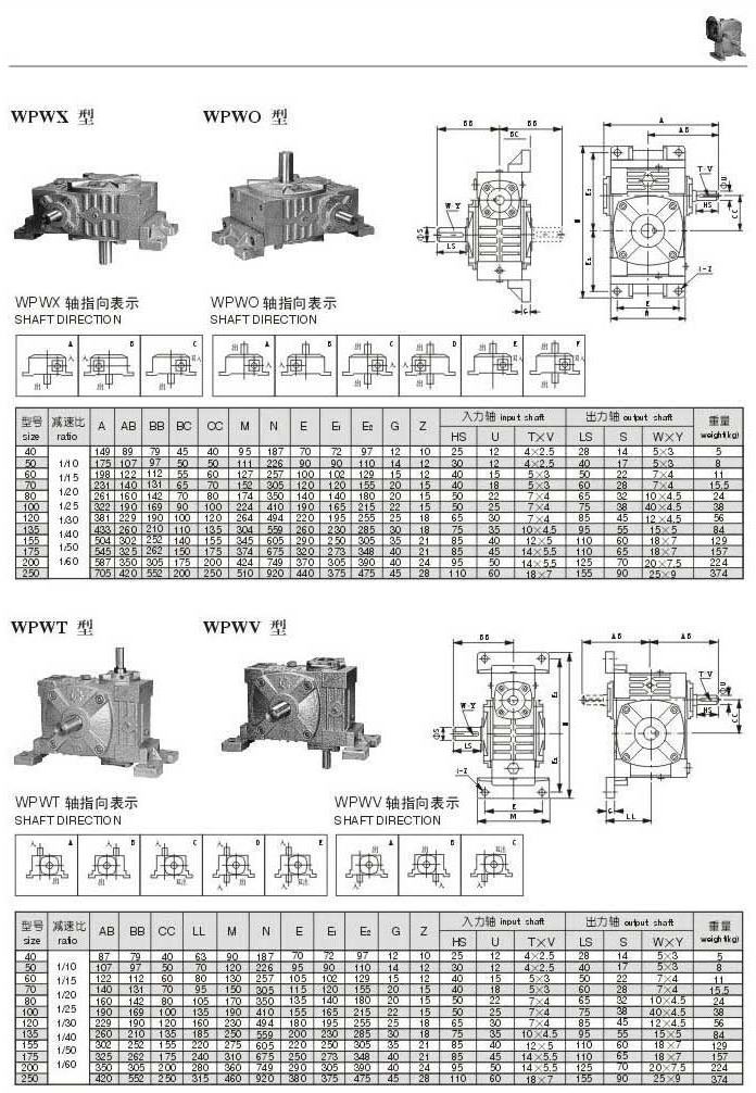 WPWX, WPWO,WPWT,WPWV型型號參數(shù)圖表
